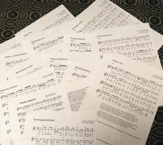 Vi börjar med att skriva noter till de visor som finns med i de nyskrivna manuskripten som ingår i projektet. Också de visor som finns med på CD-skivan prioriteras. I det här skedet finns inget beslut på hur noterna ska användas i framtiden, men vi funderar bland annat på om man kunde ge ut ett litet nothäfte, som kunde användas av traktens skolor och musikintresserade.