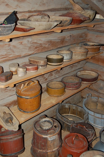 Muséets andra våning innehåller olika slags föremålssamlingar. Här finns muséets textillager och varierande samlingar av redskap och bruksföremål, men också exempel på avancerat hantverk.